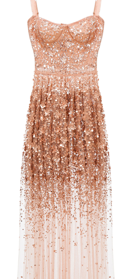Per la sera poi una pioggia di pailettes per l’abito da sogno firmato Elisabetta Franchi: sensuale e al tempo stesso romantico, proprio come la stilista che più di tutte ama la femminilità delle donne.